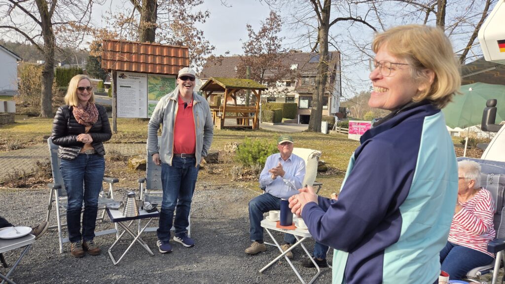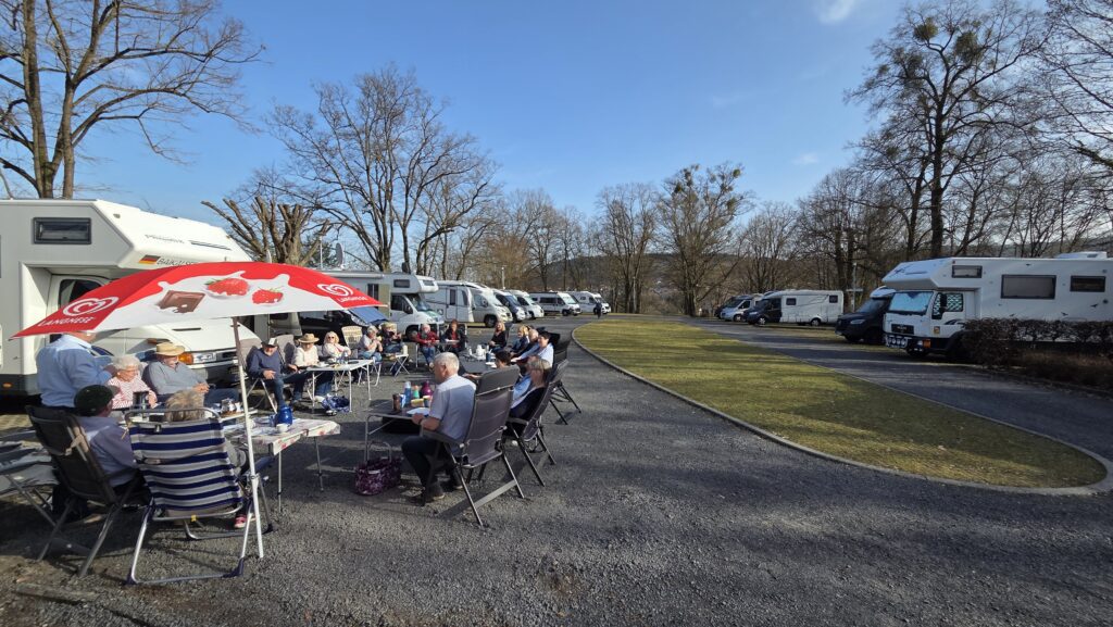 Bei frühlingshaften Temperaturen und Sonnenschein pur trafen am Freitag nach und nach 13 Mobile auf dem Wohnmobilhafen Hardegsen ein. Der kleine, sehr gepflegte Stellplatz liegt zentral und bot damit einen idealen Ausgangspunkt für das gemeinsame Wochenende.