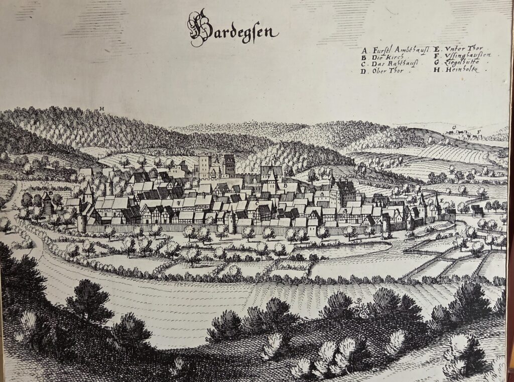 Hardegsen, auch als Eselstadt bekannt, blickt auf eine wechselhafte, über 1000 Jahre alte Geschichte zurück. Besonders beeindruckend war die Besichtigung des Muthauses der Burg aus dem Jahr 1324. Der darin befindliche Kreuzgewölbekeller, der Rittersaal und der Fürstensaal sind heute wieder renoviert und vermitteln einen guten Eindruck vom früheren Leben auf der Burg. Sogar der Aborterker konnte betreten werden – eine Besonderheit, die unseren Bernhard spontan zu einem heiteren Reim inspirierte: „Hier drückt der Mensch mit voller Kraft, den Dünger für die Landwirtschaft.“