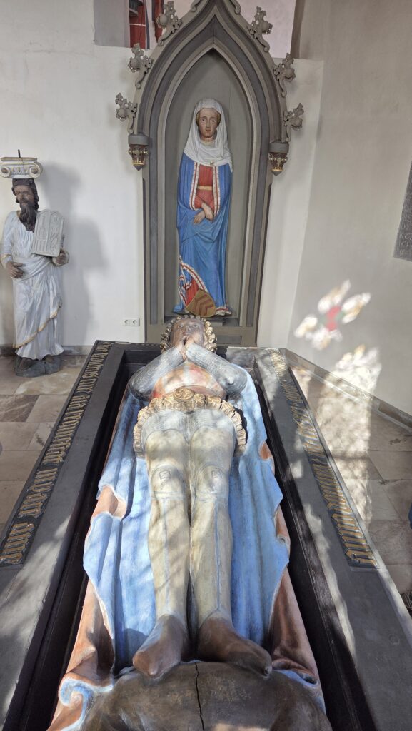 Im Anschluss führte uns der Weg zur evangelischen Mauritiuskirche, von Herzogin Margarete vollendet, nach dem Tod ihres Gatten, dem Welfenherzog Otto I. von Braunschweig. Otto galt als gefürchteter Raubritter, der ihm den Beinamen „Der tobende Hund von der Leine“ verdankt. Er starb schließlich im kirchlichen Bann. Margarete versuchte nach seinem Tod durch großzügige Schenkungen an die Kirche und sozialem Handeln, für sein Seelenheil zu sorgen.